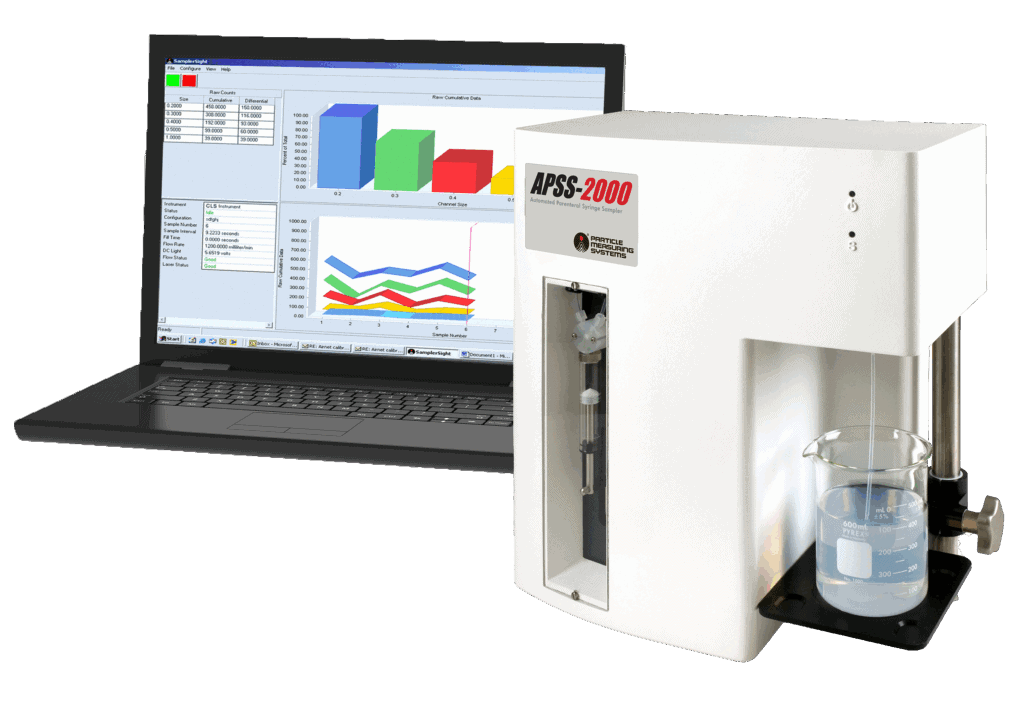 Liquid Particle Counter for USP 788; sizes & counts suspended particles in a wide range of liquids, including parenterals.